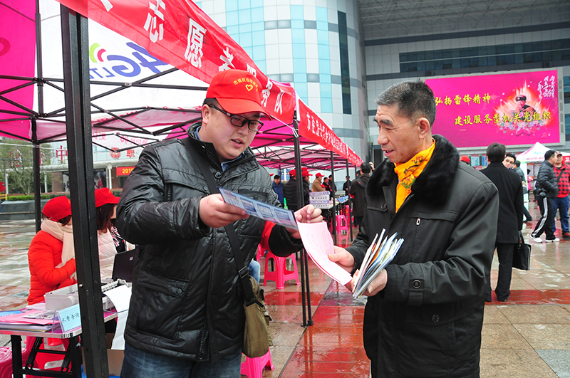 3月5日,公司組織志愿者參加“弘揚(yáng)雷鋒精神、爭當(dāng)服務(wù)先鋒”活動(dòng),在文化宮現(xiàn)場為廣大用戶提供水質(zhì)、用水和接水及水表出戶業(yè)務(wù)辦理等咨詢、繳費(fèi)水費(fèi)、便民小維修、用水知識(shí)宣傳等服務(wù)活動(dòng)。如圖志愿者正在為市民介紹水費(fèi)交費(fèi)方式。