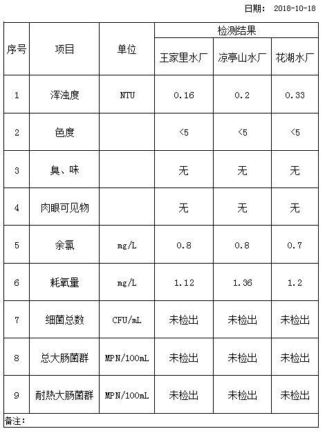 10月18日出廠水項(xiàng)目監(jiān)測(cè)結(jié)果