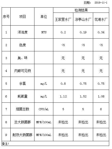 11月1日出廠水項目監(jiān)測結(jié)果