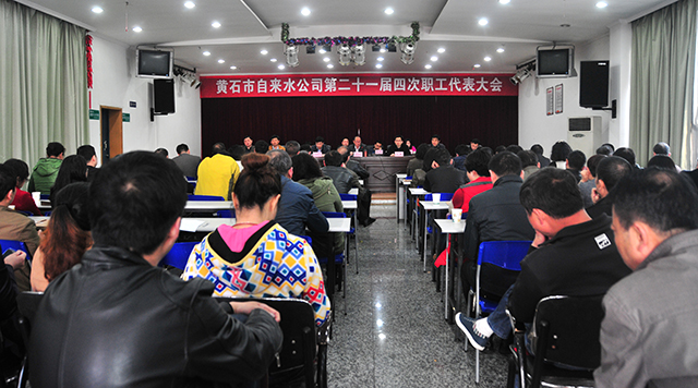 3月30日,公司在二樓會議室召開了第二十一屆四次職工代表大會,來自公司各單位的64名職工代表、7名退休職工代表、21名列席代表在此共謀發(fā)展大計,公司領(lǐng)導班子成員出席了會議。會上,公司黨委書記余曦同志代表班子作了2014年工作報告,他在報告中客觀詳實地總結(jié)了2014年公司的各項工作,重點對安全生產(chǎn)、供水項目建設(shè)、DMA系統(tǒng)建設(shè)、行評活動、相關(guān)產(chǎn)業(yè)、黨建群教工作七個方面進行了總結(jié),各項工作取得了實效,全年實現(xiàn)售水量7650.34萬噸;實現(xiàn)經(jīng)營總收入2.17億元;實現(xiàn)利潤1442.55萬元,上繳稅費1050.46萬元;完成供水管網(wǎng)改造11.1公里;新增用戶11685戶;產(chǎn)銷差率23.76%;管網(wǎng)水質(zhì)綜合合格率達99.9%。報告中還強調(diào)了2015年的主要計劃和重點工作:一是開展“制度執(zhí)行年”活動,實現(xiàn)制度約束力,提升各項工作管理水平;二是開展供水普查工作;三是進一步提升供水水質(zhì);四是繼續(xù)推進供水智能信息化建設(shè);五是進一步提升供水服務(wù)質(zhì)量和水平;六是做好“十三五”供水發(fā)展規(guī)劃編制工作;七是全面加強宣傳工作,傳遞供水事業(yè)正能量;八是加強作風建設(shè),全面落實“兩個責任”,在全公司大力營造風清氣正、和諧共事、創(chuàng)先爭優(yōu)的干事創(chuàng)業(yè)氛圍。