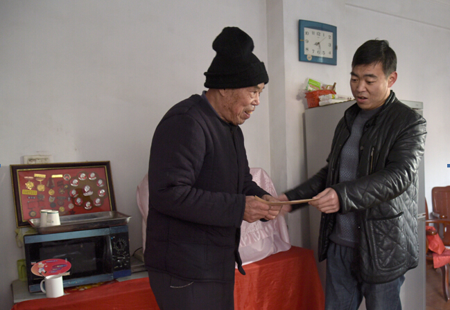 如圖:1月24日,工會主席張建平上門看望、慰問離休干部馬群德同志。