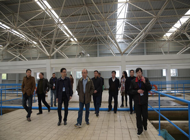 圖為:創(chuàng)建國家衛(wèi)生城市技術評估組在涼亭山水廠檢查創(chuàng)衛(wèi)工作