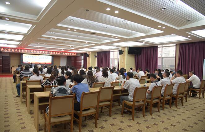 參觀結(jié)束后,公司機關(guān)黨支部在大冶檢察院會議室舉辦了“廉潔供水”主題黨日活動,黨員干部們重溫入黨誓詞,誦讀黨章,學習了《習近平談治國理政》等內(nèi)容,并結(jié)合自身和企業(yè)實際暢談了參觀警示教育后的心得體會。公司黨委書記、董事長余曦作總結(jié)發(fā)言,他要求全體黨員干部要進一步加大學習法律法規(guī)、黨規(guī)黨紀的力度,增強自律自醒意識,反腐倡廉警鐘長鳴。