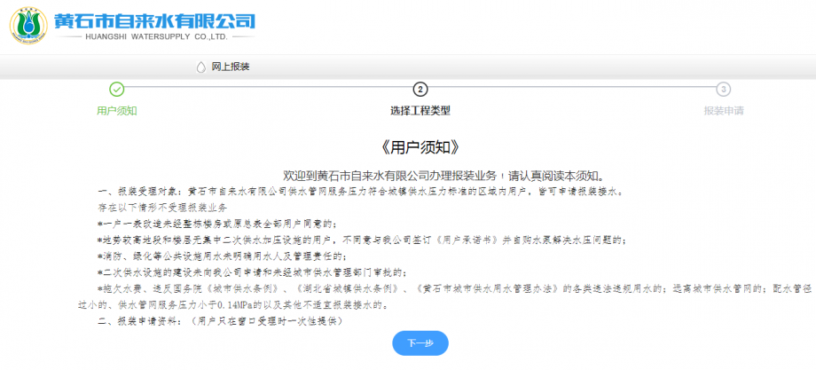 為了進(jìn)一步優(yōu)化營商服務(wù),公司創(chuàng)新采用“互聯(lián)網(wǎng)+供水新模式”,開通用戶網(wǎng)上報(bào)裝,實(shí)現(xiàn)“最多跑一次”。即日起用戶辦理報(bào)裝可使用“黃石市自來水有限公司”微信公眾號或者黃石市自來水有限公司官方網(wǎng)站(http://www.xdviet.com)中網(wǎng)上報(bào)裝功能,報(bào)裝資料經(jīng)后臺審核合格后,業(yè)務(wù)人員會主動與用戶取得聯(lián)系,做好對接服務(wù)工作,避免了用戶的來回奔波,形成線上線下功能互補(bǔ),提高用戶滿意度。