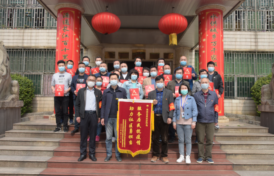 3月23日下午,王家里社區(qū)第一書記劉振洪、社區(qū)書記王凱東一行將一面寫有"服務(wù)居民抗疫情 助力社區(qū)勇?lián)?dāng)”的錦旗送到市自來(lái)水有限公司,感謝公司為該社區(qū)疫情防控工作做出的貢獻(xiàn)。