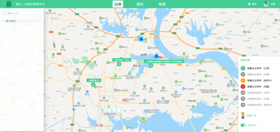 工作人員可以通過網(wǎng)頁、手機APP、微信小程序等渠道,接入該平臺,24小時實時監(jiān)控二次供水泵房設備設施的運行狀態(tài)。且隨著接入泵房數(shù)量的增加,黃石市自來水有限公司將通過數(shù)據(jù)分析/預警、電子巡檢和人工巡檢相結(jié)合的方式,進一步降低運維成本,有效解決設備多、維護難、無法及時響應等痛點,變被動為主動,提高供水服務質(zhì)量。