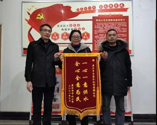 2月26日,中山小學向市自來水有限公司求助,因新建教學樓,用水量突增,導(dǎo)致水壓降低,嚴重影響學校正常用水。市自來水有限公司立即組織人員趕赴現(xiàn)場,勘察情況,分析原因,提出解決方案,并加班加點免費為學校安裝戶內(nèi)加壓水泵,解決了學校的用水難題,保障了學生安心上課。其后,中山小學送來錦旗:一心一意供水,全心全意為民。