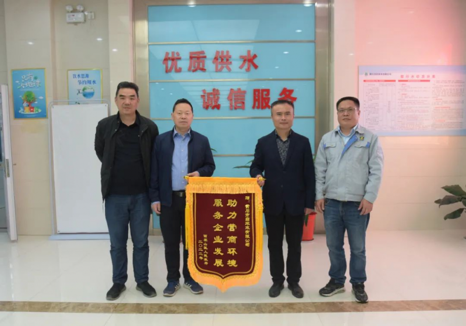 4月15日上午,西塞山區(qū)項(xiàng)目辦主任及企業(yè)代表將一面寫有“助力營商環(huán)境 服務(wù)企業(yè)發(fā)展”的錦旗送至黃石市自來水有限公司,“點(diǎn)贊”高效優(yōu)質(zhì)供水服務(wù)。