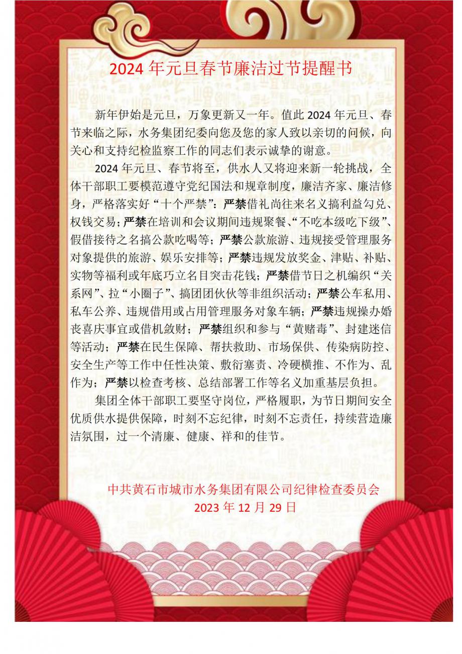 2024 年元旦春節(jié)廉潔過節(jié)提醒書
