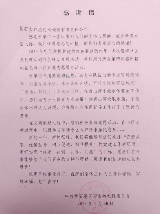 自創(chuàng)建“紅色驛站”以來,我們發(fā)揮技術優(yōu)勢,為黨員群眾提供管網疏通等志愿服務,截止目前污水公司已派出專業(yè)隊伍開展志愿疏通服務15次,疏通惠及社區(qū)群眾1000多戶,下一步污水(排水)公司將以“紅色驛站”為載體,聯(lián)合延安嶺社區(qū),積極擴大企業(yè)的社會影響力,為優(yōu)化我市營商環(huán)境展現(xiàn)國企擔當。