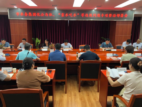 5月16日上午,市水務(wù)集團召開化公為私、“靠水吃水”違規(guī)參與營利性活動問題專項整治工作專題部署會。集團黨委書記、董事長余曦出席會議并講話,會議由黨委副書記、紀(jì)委書記黃愛申主持。