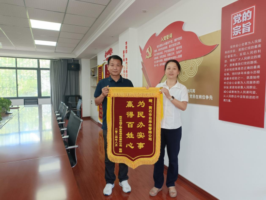 8月17日下午5時,團城山玉龍灣19層用戶水龍頭開始嘩嘩流出自來水,影響玉龍灣小區(qū)高層用戶無水問題,在市水務(wù)集團供水搶修隊員不懈努力下徹底解決。21日上午,黃石市揚子物業(yè)管理有限責任公司經(jīng)理與居民代表自發(fā)送來錦旗,感謝管維公司維修人員頂著高溫天氣為他們送上“汩汩清泉”。