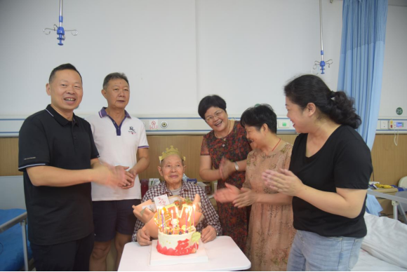 “祝您生日快樂……”9月14日,溫馨歡快的生日歌在醫(yī)院響起,市水務(wù)集團(tuán)工會(huì)主席石碧峰同志帶隊(duì)看望慰問市自來水公司離休干部周存榮,慶祝他百歲壽誕,送上美好祝福。