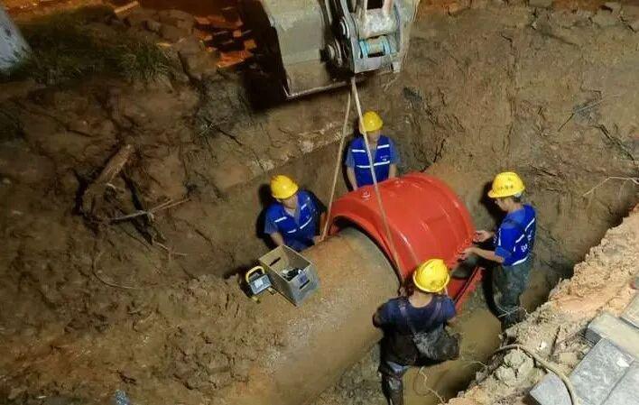 經(jīng)現(xiàn)場(chǎng)查漏定位,搶修人員發(fā)現(xiàn)爆管的是一根DN800的主供水管道——它是團(tuán)城山區(qū)域的主要供水 “動(dòng)脈”。考慮到中秋期間市民用水需求迫切,停水會(huì)給節(jié)日生活帶來諸多不便,管維公司果斷決定:帶水作業(yè)搶修,全力保障供水不間斷。