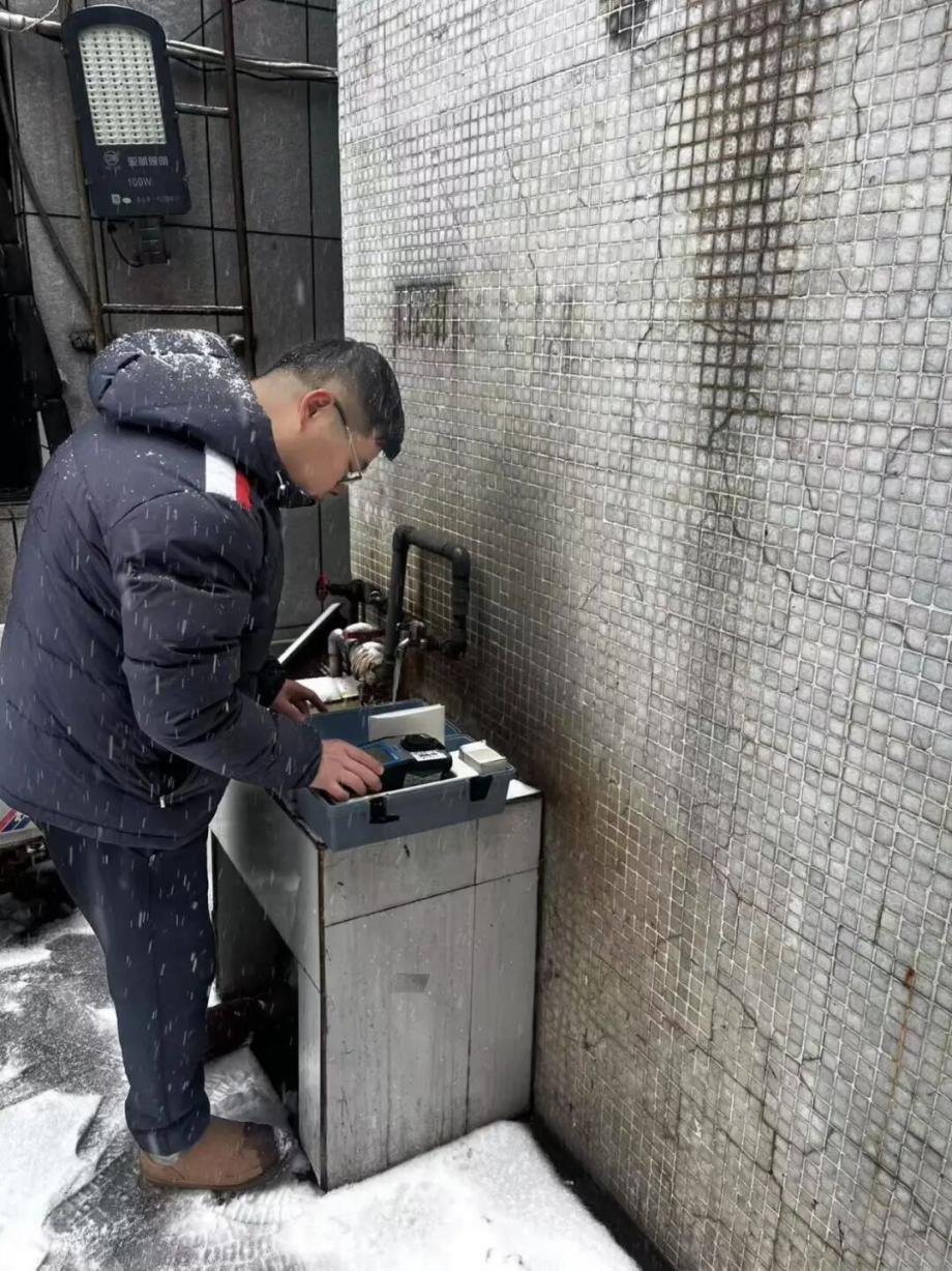 “冰雪天最怕設(shè)備凍住、管網(wǎng)結(jié)冰,我們?cè)缭缇妥龊昧藴?zhǔn)備!”黃石水務(wù)集團(tuán)制水分公司相關(guān)負(fù)責(zé)人協(xié)同水廠運(yùn)行值班人員一邊檢查水泵保溫層,一邊介紹。降雪前,在市城發(fā)集團(tuán)部署下,黃石水務(wù)集團(tuán)已對(duì)全市各水廠、加壓站的制水設(shè)備、管網(wǎng)閘門(mén)、水表等設(shè)施開(kāi)展全面排查,給露天設(shè)備加裝保溫套、對(duì)裸露管網(wǎng)纏裹防凍材料,提前消除低溫隱患。降雪后,巡檢頻次翻倍,工作人員堅(jiān)持 “勤看、勤聞、勤測(cè)”,重點(diǎn)檢查設(shè)備運(yùn)行狀態(tài)、管網(wǎng)接口密封性,杜絕凍裂漏水情況發(fā)生。